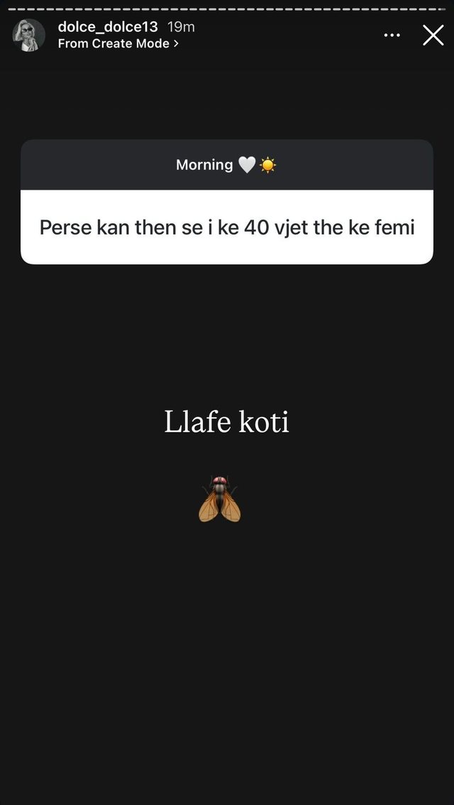 Ndërkohë, një tjetër ndjekës e pyeti pse janë përhapur fjalë se ajo është 40 vjeçe dhe ka fëmijë. Për këtë, Dolce reagoi pa i dhënë shumë rëndësi, duke i quajtur thjesht: